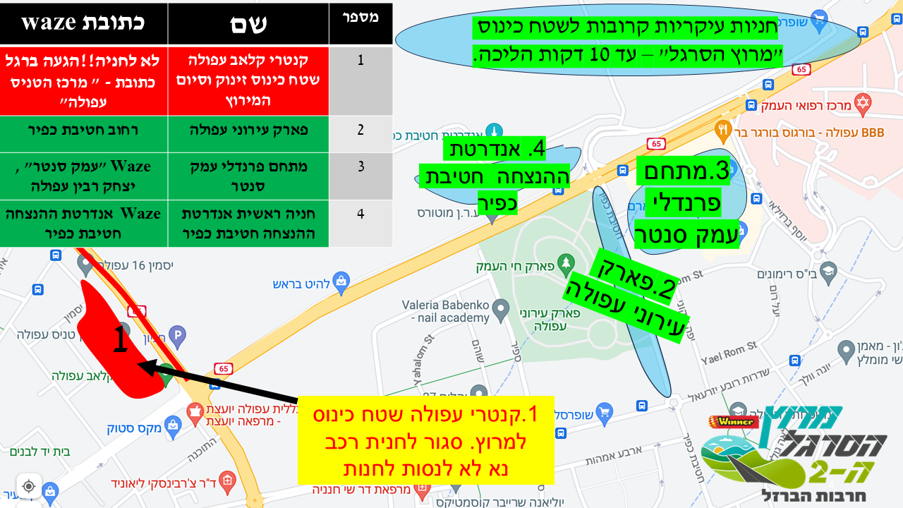 נקודת זינוק – על הכביש הכניסה לעפולה מול הקאנטרי קלאב בכיוון היציאה מהעיר